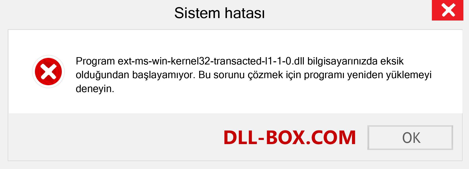 1. ext-ms-win-kernel32-transacted-l1-1-0.dll bilgisayarınızda olmadığı için program başlatılamıyor. Bu sorunu gidermek için programı yeniden yüklemeyi deneyin.